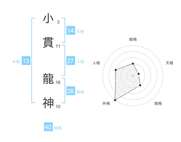 小貫 龍神さんの外格は13画の5点!