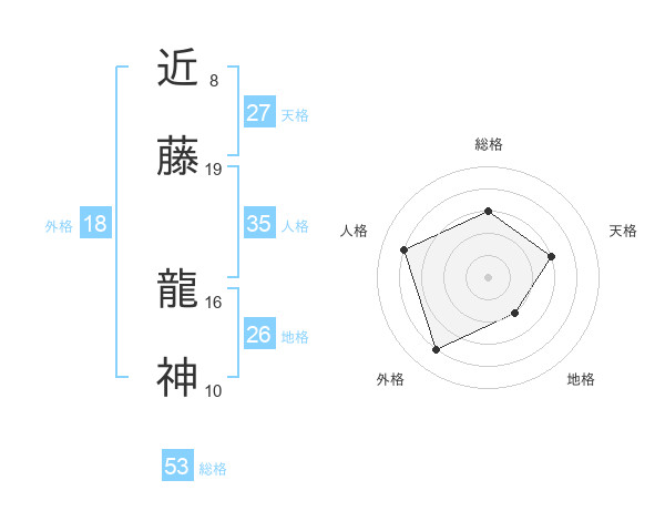 近藤 龍神さんを姓名の画数から五運を鑑定
