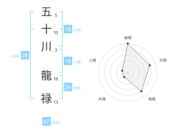五十川 龍禄さんを姓名の画数から五運を鑑定