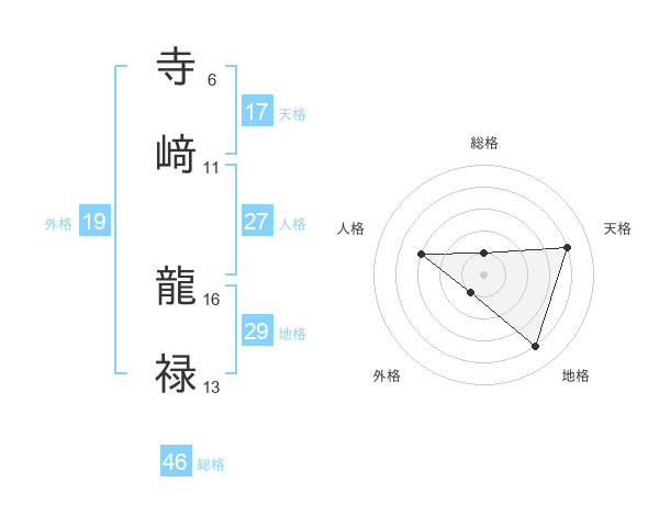 寺﨑 龍禄さんの総格は46画の1点!