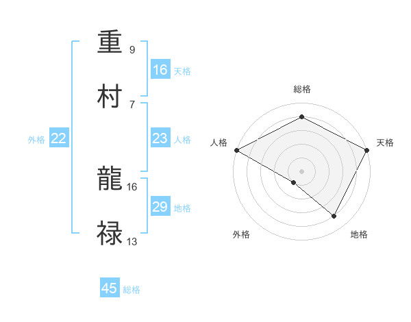 重村 龍禄さんを姓名の画数から五運を鑑定