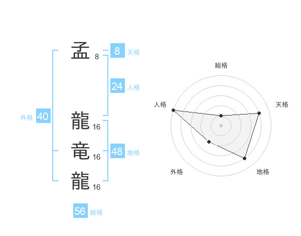 孟 龍竜龍さんの総格は56画の1点!