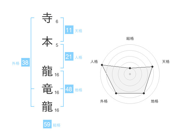 寺本 龍竜龍さんの総格は59画の1点!