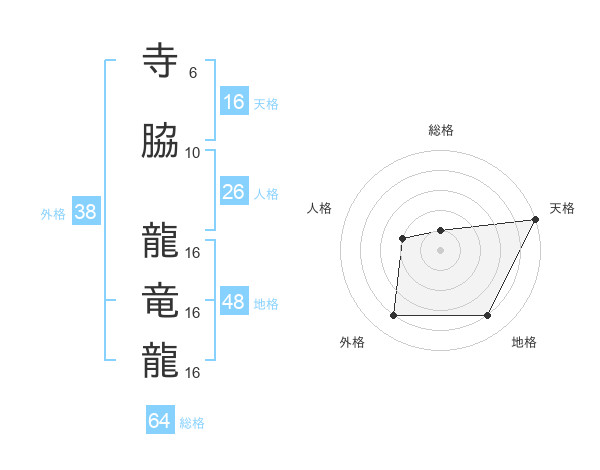 寺脇 龍竜龍さんの総格は64画の1点!