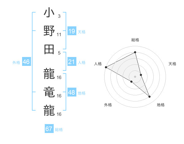 小野田 龍竜龍さんを姓名の画数から五運を鑑定