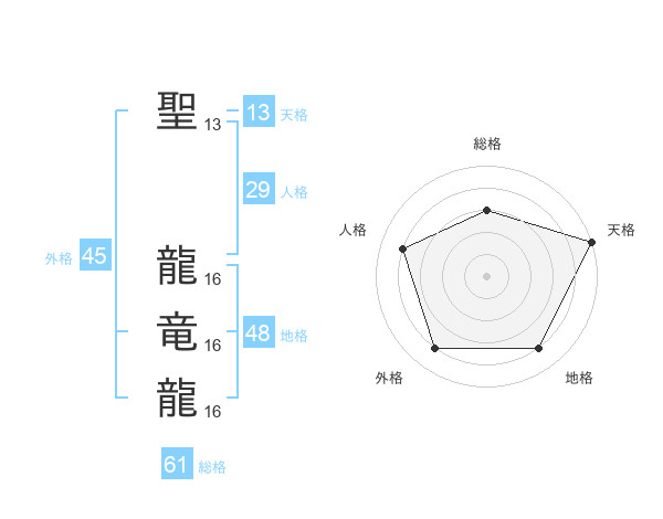 聖 龍竜龍さんを姓名の画数から五運を鑑定