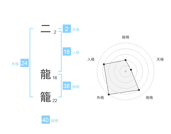 二 龍籠さんの総格は40画の2点!