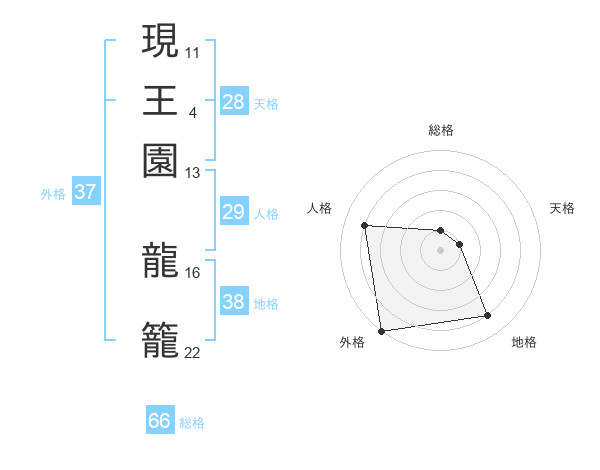 現王園 龍籠さんを姓名の画数から五運を鑑定