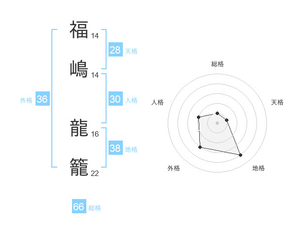 福嶋 龍籠さんを姓名の画数から五運を鑑定
