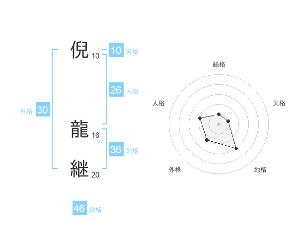 倪 龍継さんの総格は46画の1点!