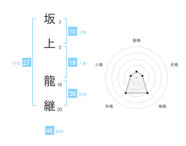 坂上 龍継さんの総格は46画の1点!