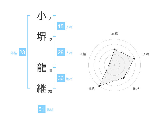 小堺 龍継さんを姓名の画数から五運を鑑定