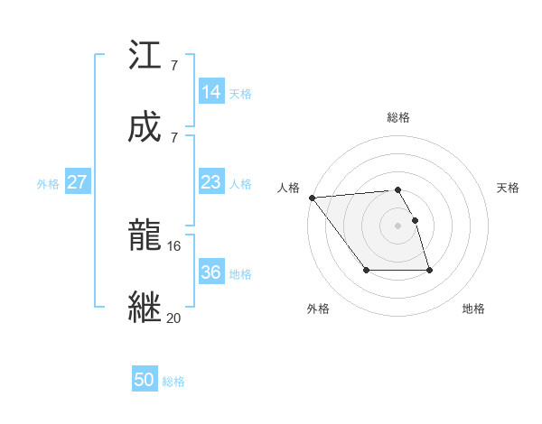 江成 龍継さんの総格は50画の2点!