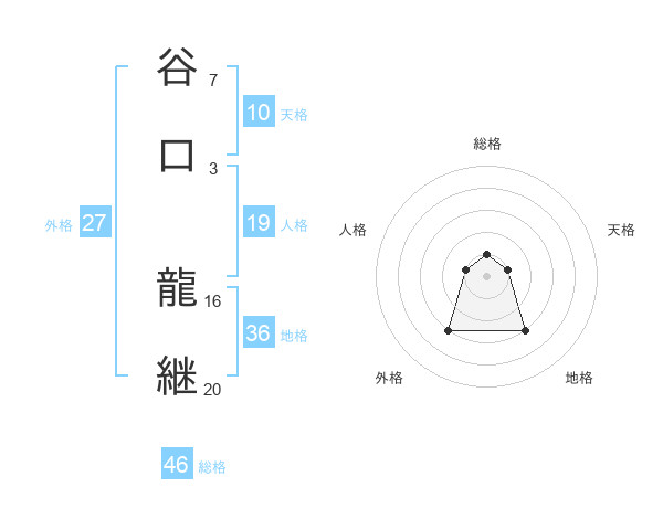 谷口 龍継さんを姓名の画数から五運を鑑定