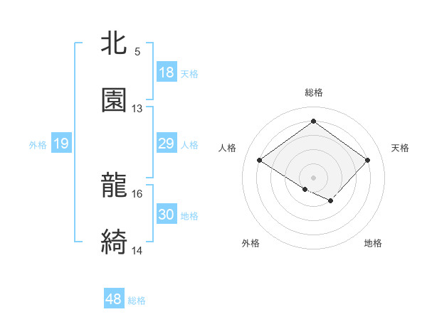 北園 龍綺さんを姓名の画数から五運を鑑定
