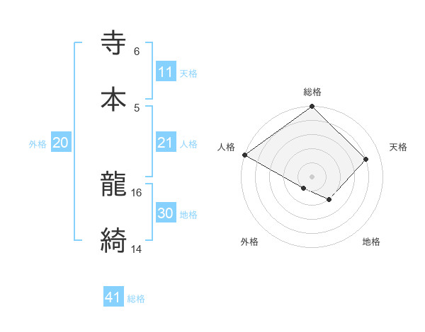 寺本 龍綺さんの天格は11画の4点!
