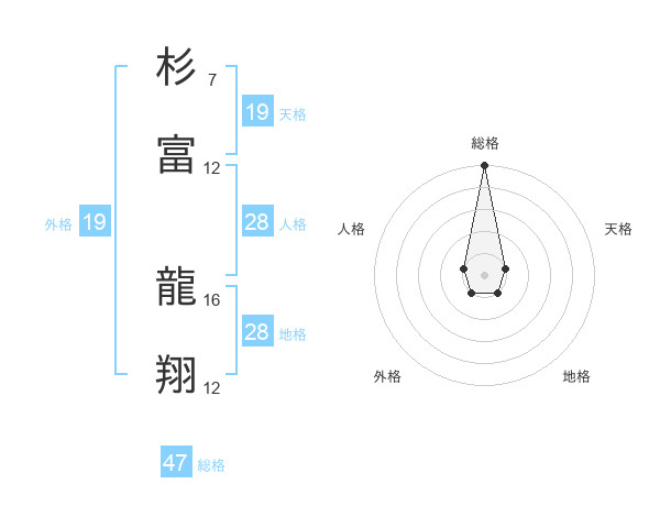 杉富 龍翔さんを姓名の画数から五運を鑑定