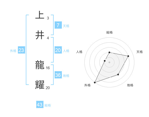 上井 龍耀さんの総格は43画の2点!