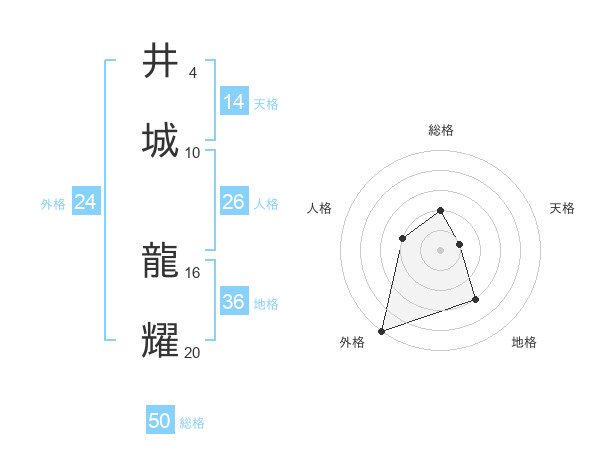 井城 龍耀さんの総格は50画の2点!