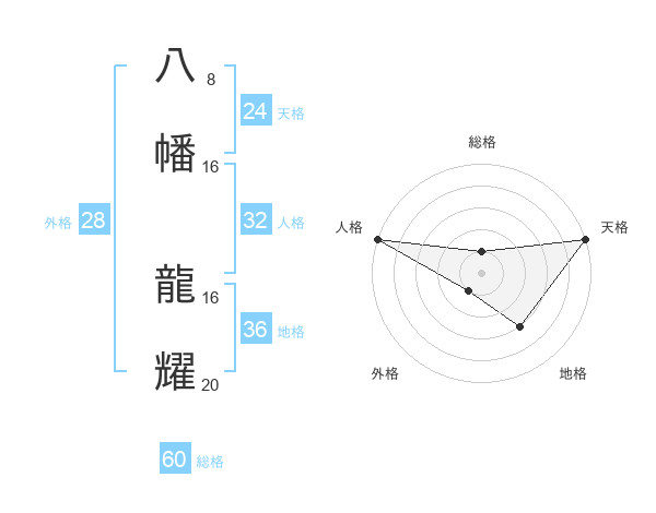 八幡 龍耀さんの総格は60画の1点!