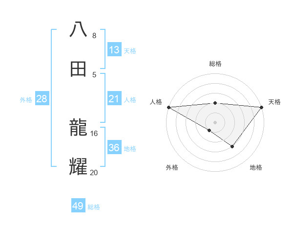 八田 龍耀さんの天格は13画の5点!