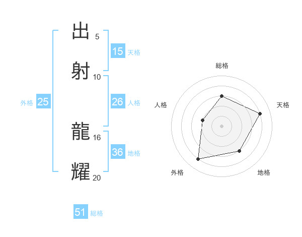出射 龍耀さんを姓名の画数から五運を鑑定