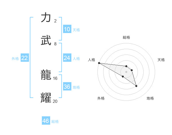 力武 龍耀さんの総格は46画の1点!