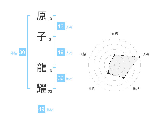 原子 龍耀さんの総格は49画の2点!