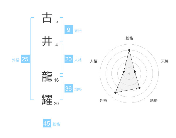 古井 龍耀さんの総格は45画の4点!