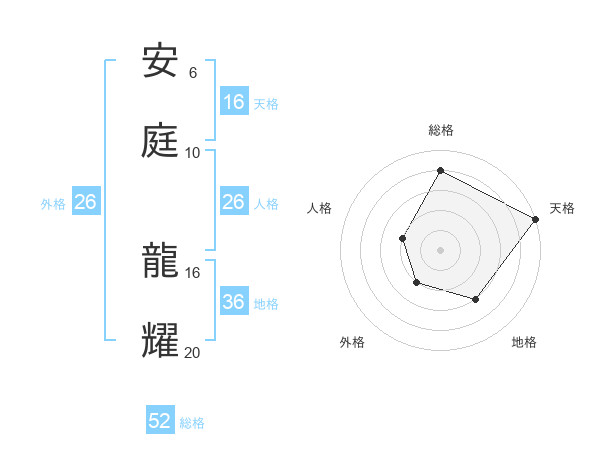 安庭 龍耀さんを姓名の画数から五運を鑑定