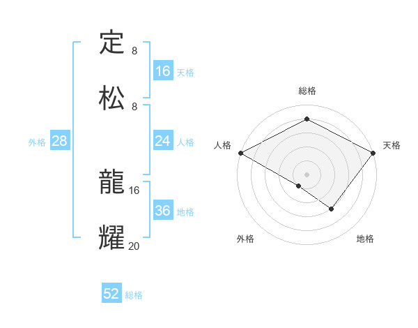 定松 龍耀さんの総格は52画の4点!