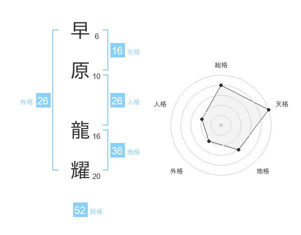 早原 龍耀さんの総格は52画の4点!