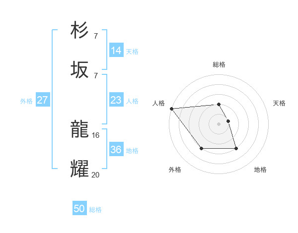 杉坂 龍耀さんの総格は50画の2点!