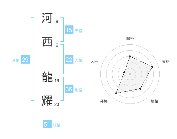 河西 龍耀さんの総格は51画の3点!