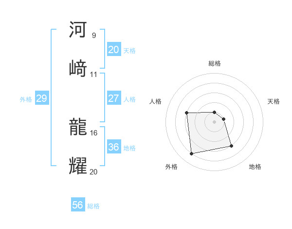 河﨑 龍耀さんを姓名の画数から五運を鑑定