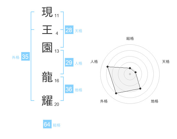 現王園 龍耀さんを姓名の画数から五運を鑑定