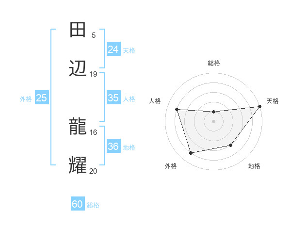 田辺 龍耀さんを姓名の画数から五運を鑑定