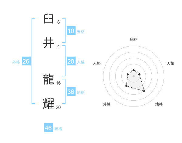 臼井 龍耀さんを姓名の画数から五運を鑑定