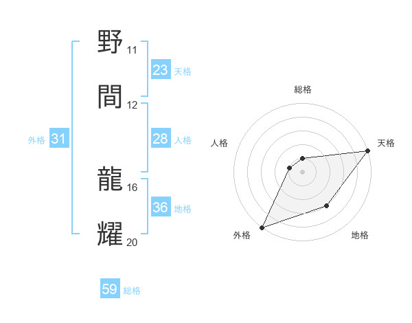 野間 龍耀さんの外格は31画の5点!
