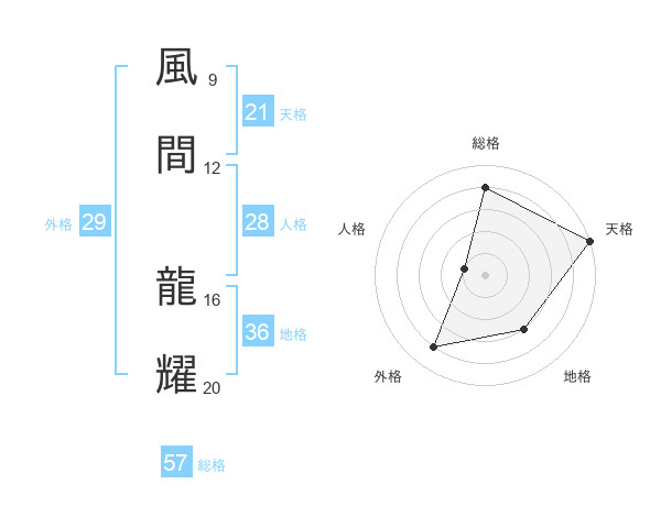 風間 龍耀さんを姓名の画数から五運を鑑定
