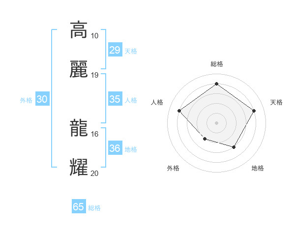 高麗 龍耀さんの総格は65画の4点!