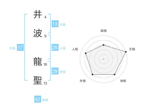 井波 龍聖さんを姓名の画数から五運を鑑定