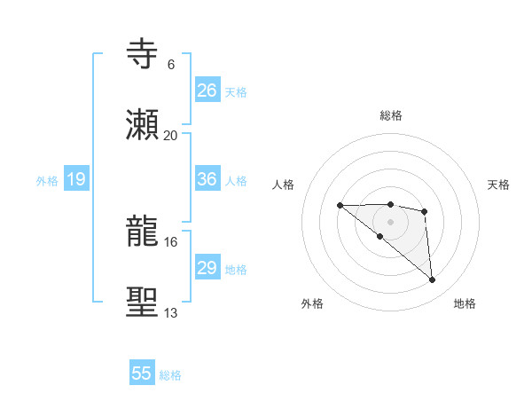 寺瀬 龍聖さんを姓名の画数から五運を鑑定