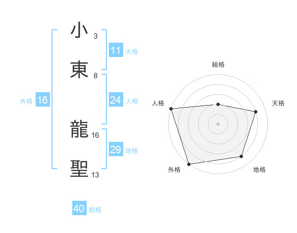 小東 龍聖さんを姓名の画数から五運を鑑定