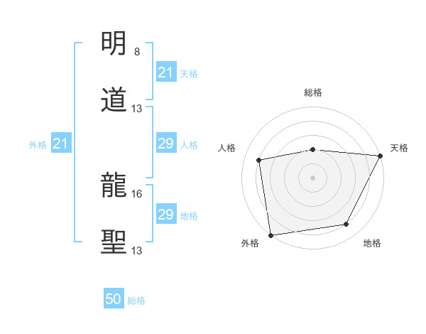 明道 龍聖さんの外格は21画の5点!