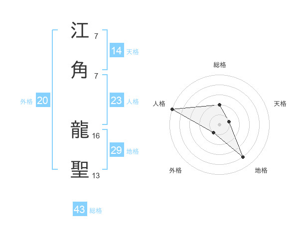 江角 龍聖さんを姓名の画数から五運を鑑定