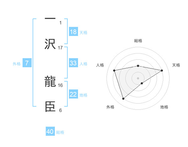 一沢 龍臣さんを姓名の画数から五運を鑑定