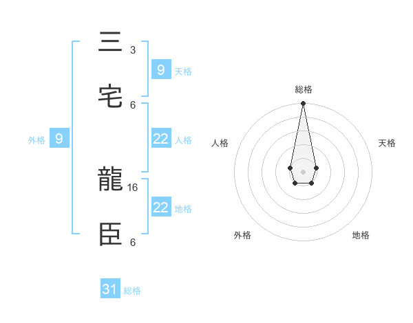 三宅 龍臣さんの総格は31画の5点!