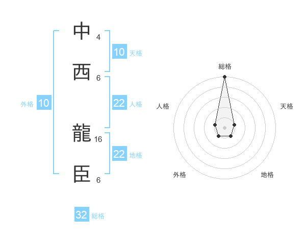 中西 龍臣さんを姓名の画数から五運を鑑定