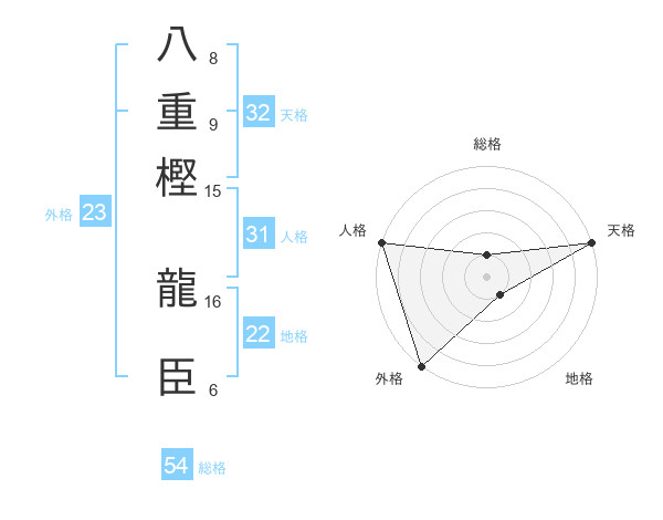 八重樫 龍臣さんを姓名の画数から五運を鑑定